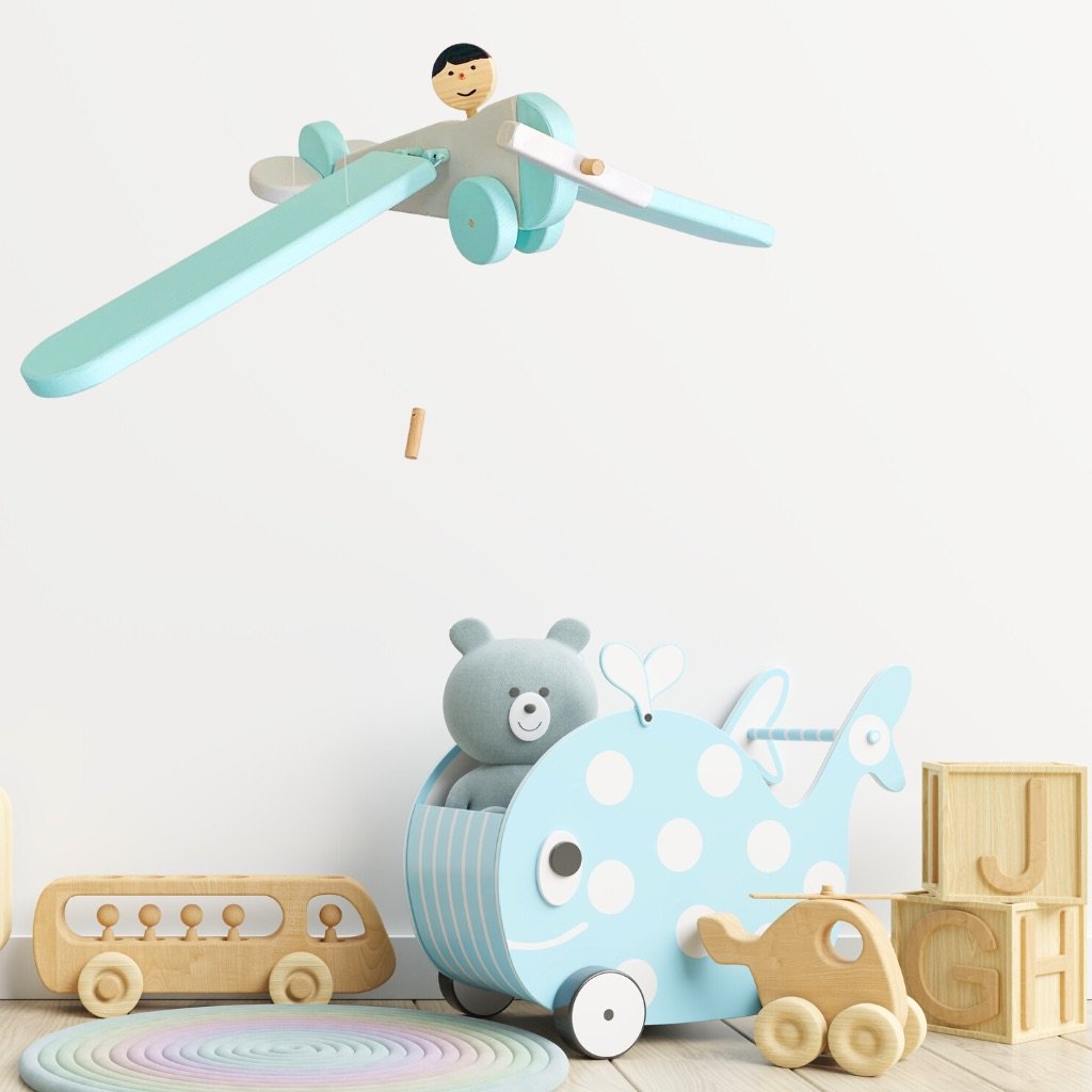 Dřevěné a taky veselé létající letadlo je závěsná dřevěná dekorace nejen do dětského pokoje. Letadýlko, které mává křídly, vykouzlí úsměv na tváři jak malým, tak velkým.