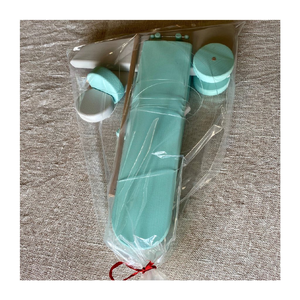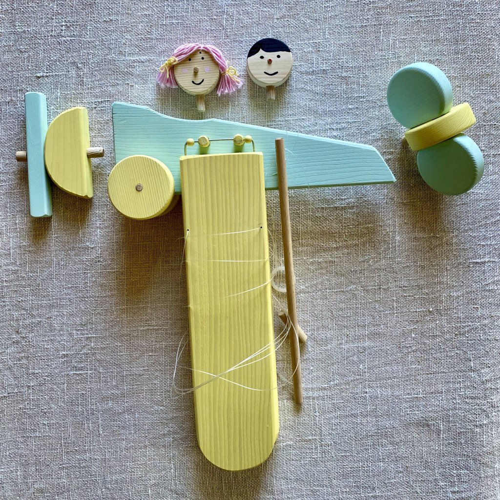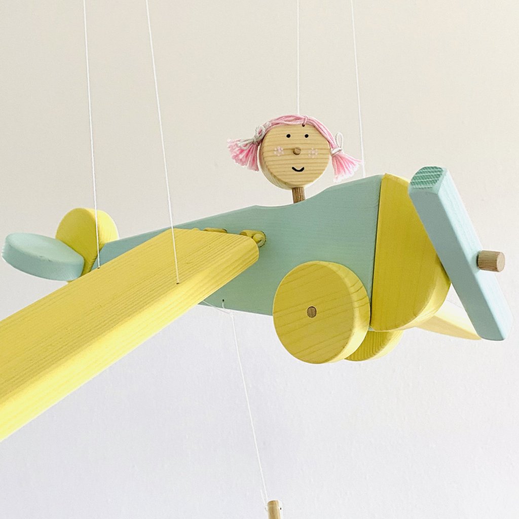 Dřevěné letadlo tyrkysovo-žluté s holkou nebo klukem