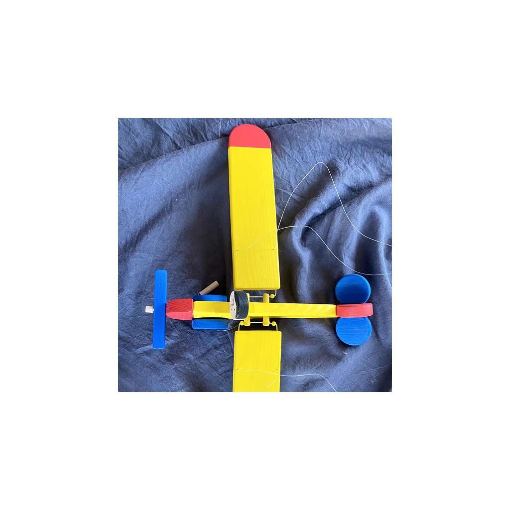 Letadlo je vyrobeno ze smrkového dřeva, ručně vyváženo a namalováno. Barvy jsou nezávadné a bezpečné pro děti.