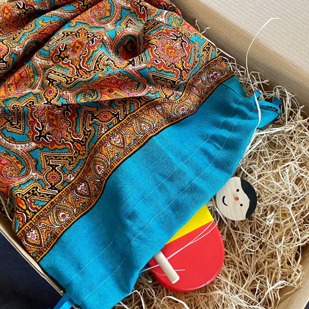 Našla jsem krásnou vintage látku a rozhodla se ušít pytlík nebo chcete li obal na naše létající hračky. Myslím, že si to naše létající hračky zaslouží, protože přeměna dřeva v krásnou hračku, která Vám vydrží i několik generací, potřebuje i krásný ekologický obal, který můžete dál použít.