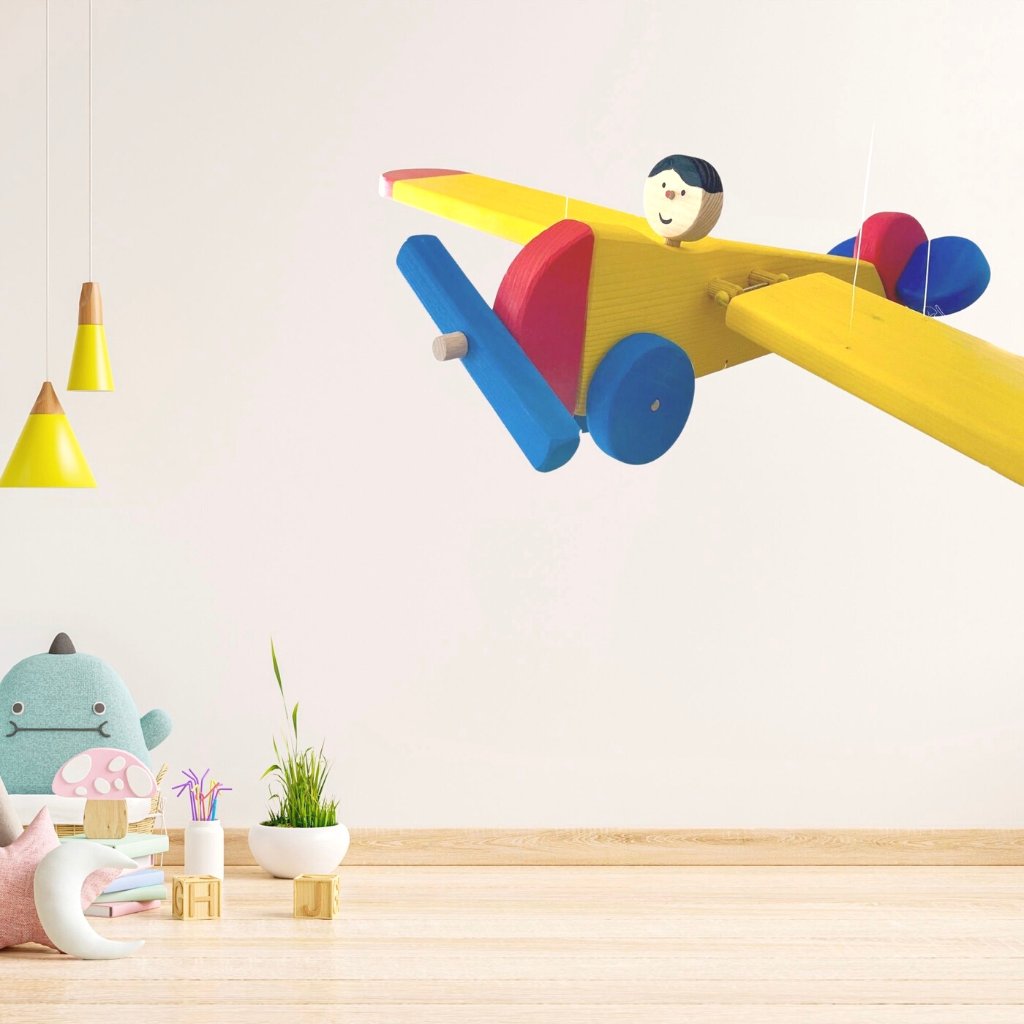 Dřevěné a taky veselé létající letadlo je závěsná dřevěná dekorace nejen do dětského pokoje. Letadýlko, které mává křídly, vykouzlí úsměv na tváři jak malým, tak velkým.