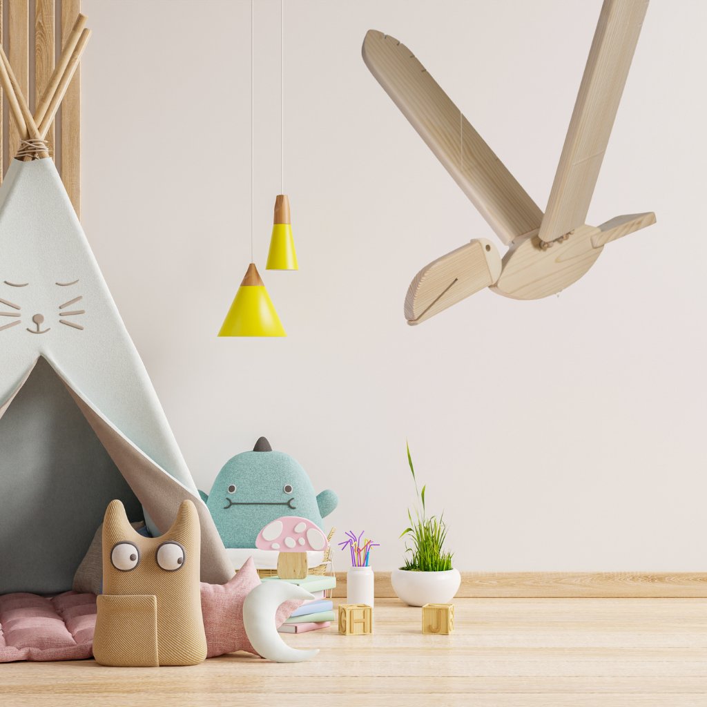 Létající dřevěný pták tukan je veselá závěsná dekorace nejen do dětského pokoje. Veselý tukan, který mává křídly a vykouzlí úsměv na tváři jak malým, tak velkým. Je to krásný a hodnotný, ručně vyrobený dárek, který voní lesem a krásně vypadá.