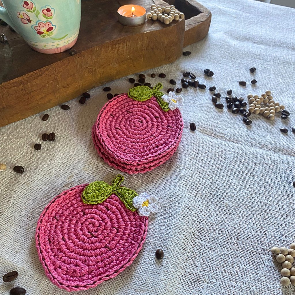 Pro všechny ty, co milují léto a jahody. Pro takové je tady set háčkovaných podšálků. Růžové jahůdky budou ozdobou na každém stole.