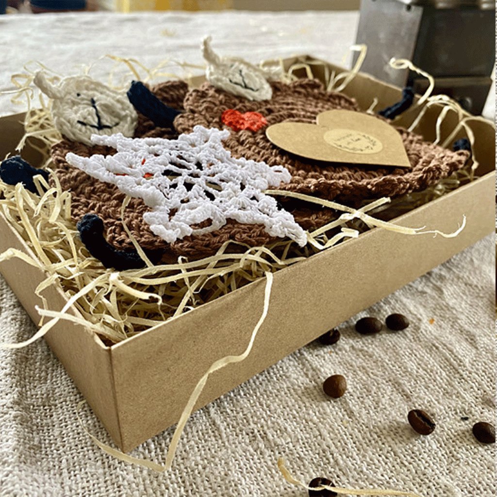 Háčkované podšálky jsou akorát tak veliké, abyste na ně mohli dát větší hrnek kafe, čaje nebo snídaňovou misku plnou cereálií. Jsou krásně zabalené, vždy s dalším malým milým překvapením. viz fotografie.