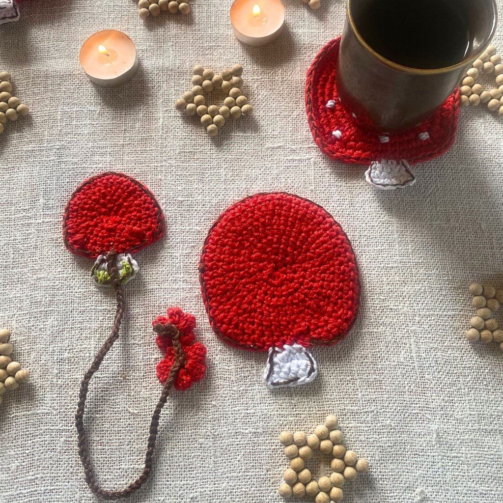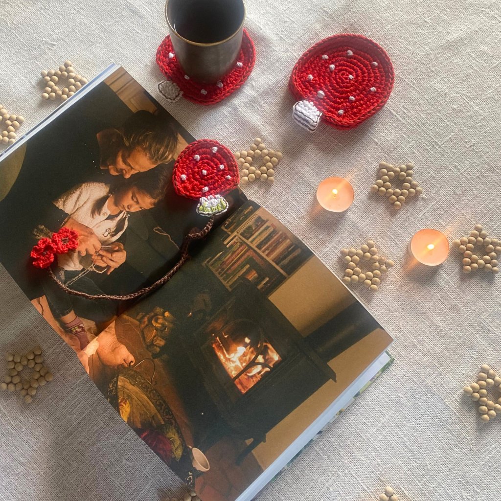 Muchomůrka pod hrníček je akorát tak veliká abyste na ni mohli dát pořádný hrnek kafe, čaje nebo snídaňovou misku plnou cereálií. Záložka bude velikostně slušet každé knížce a vánoční hvězdičce se bude líbit určitě na stromečku nebo třeba v okně. Prostě malý milý dárek, který zcela určitě potěší všechny, kdo mají rádi ruční práci a dovedou ji ocenit.