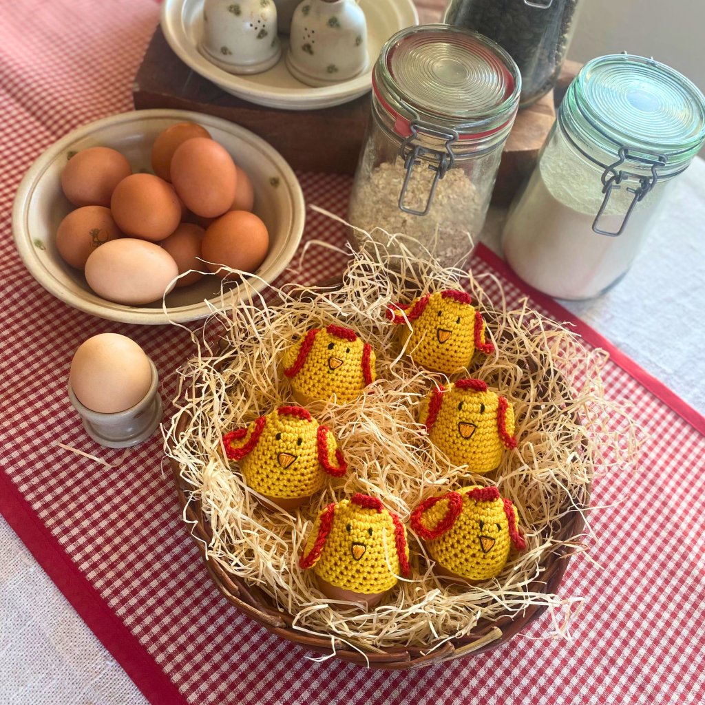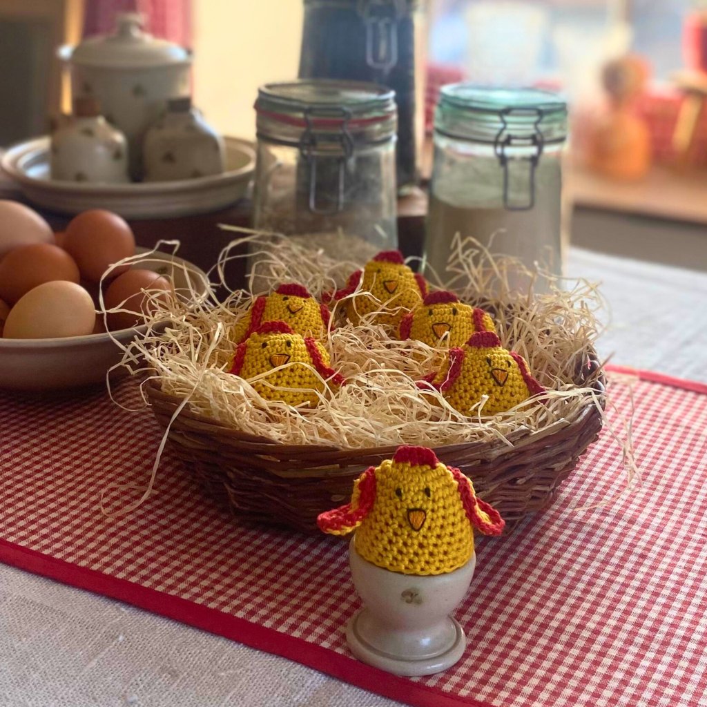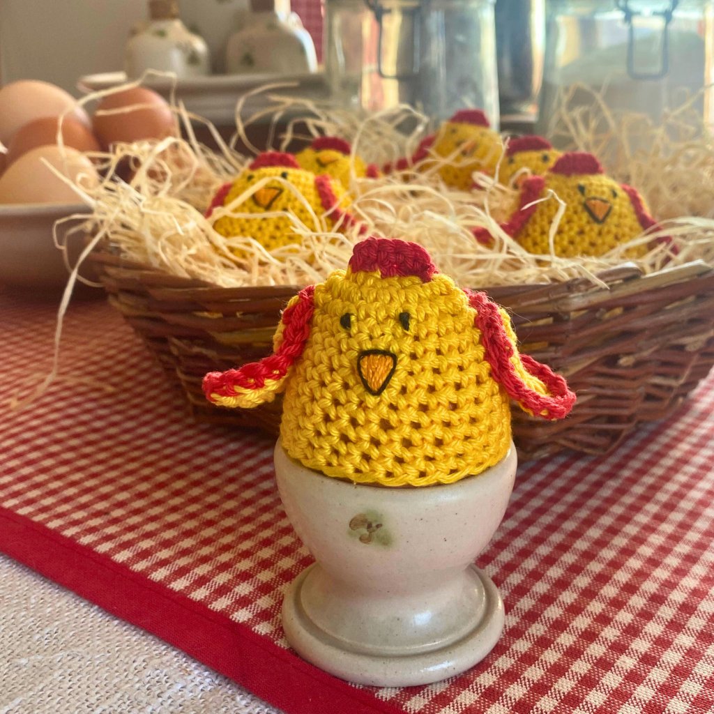 Háčkovaný obal ve tvaru kuřátka slouží jako zahříváček na vařené vajíčko a zároveň jako veselá, milá a neobvyklá dekorace na velikonočním stole.