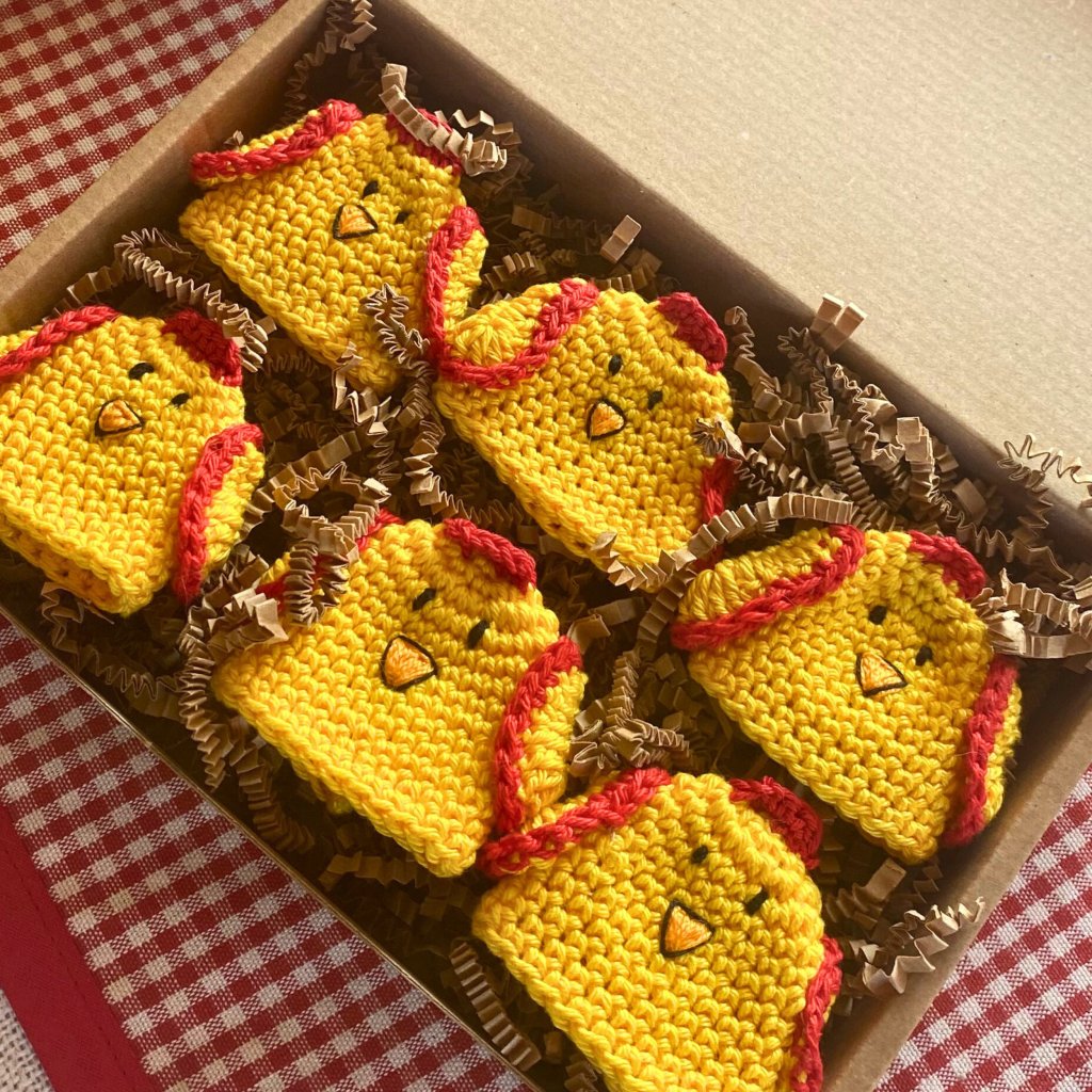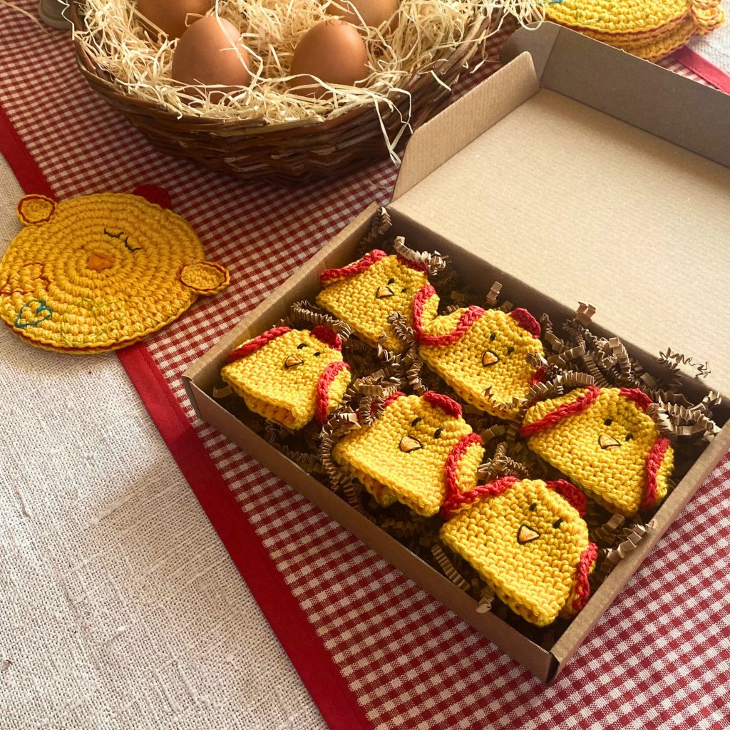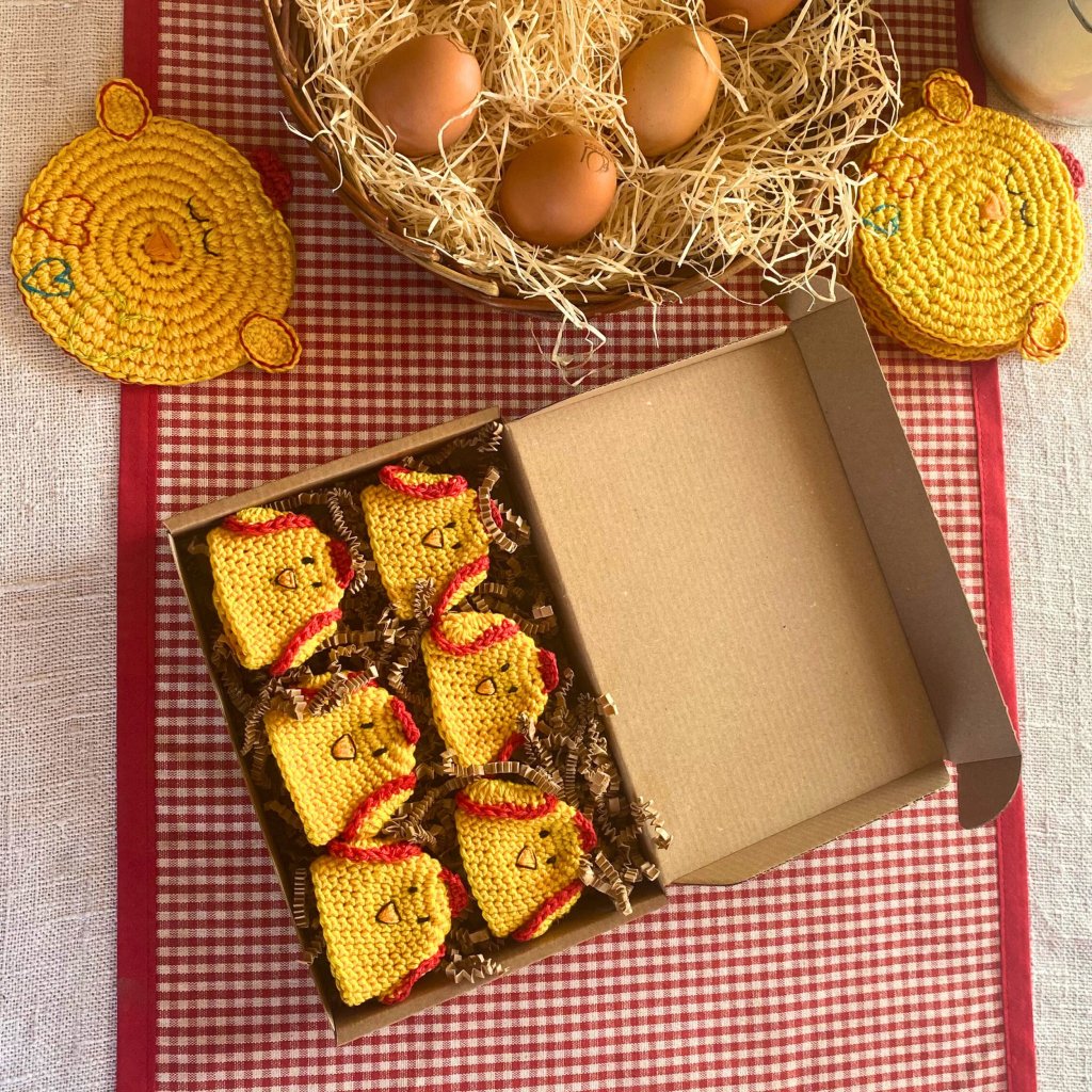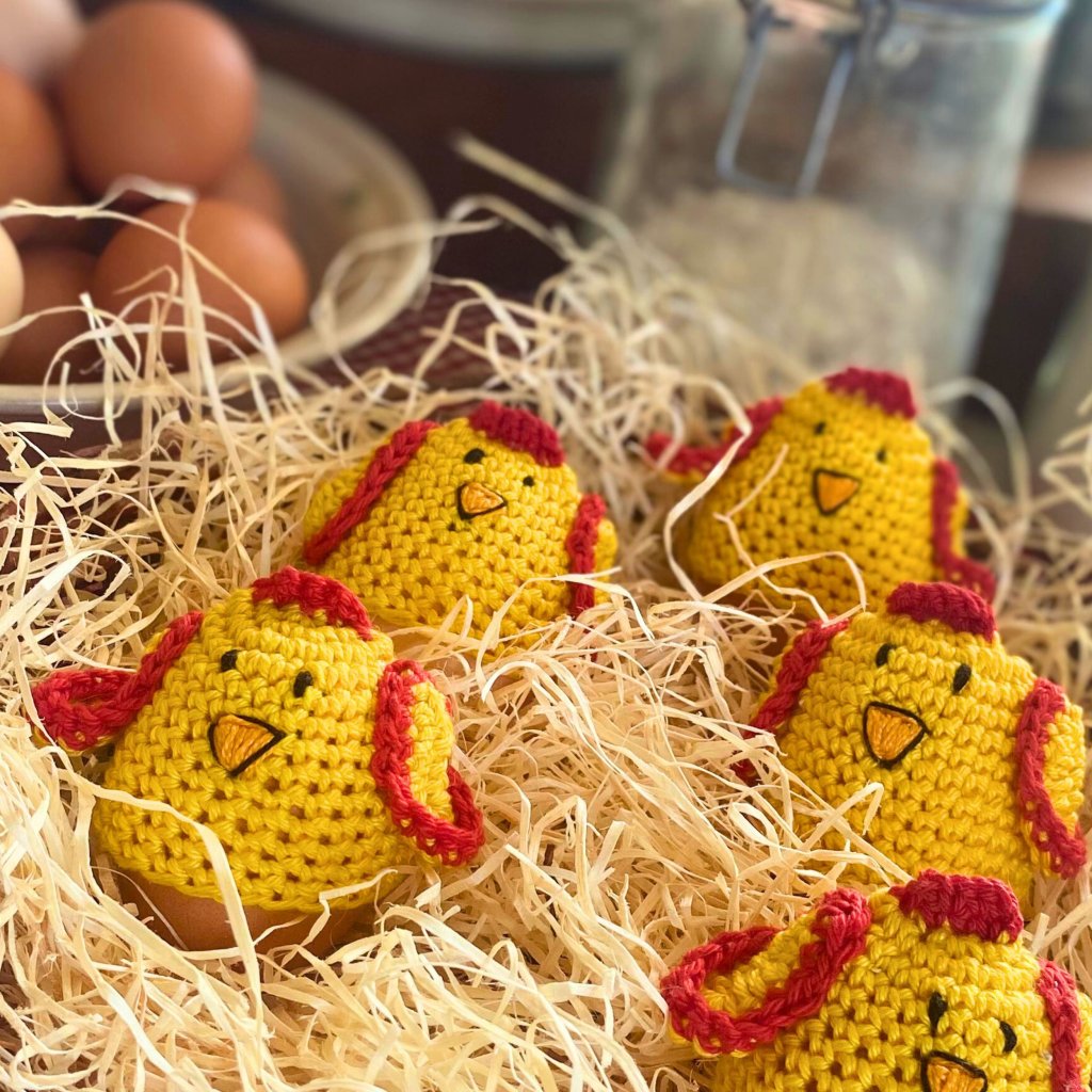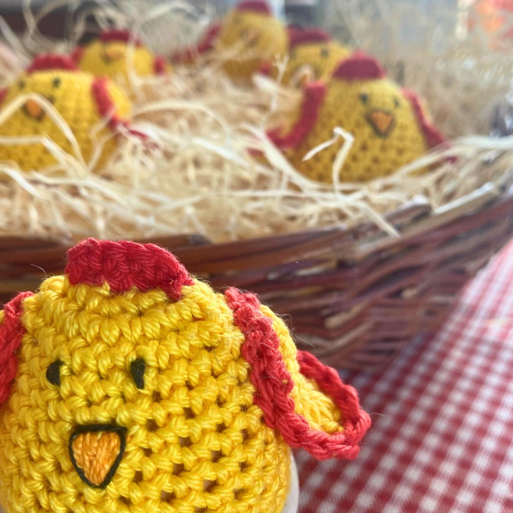 Kuřátko má vyšitá černá očička, oranžový zobáček a malá háčkovaná křidýlka, která mu dodávají hravý výraz. Každý kus vzniká ručně, takže žádné kuřátko není úplně stejné. To znamená, že vždy budete mít originál, který nemá nikdo na světě.